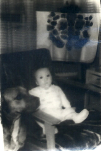 Tahle fotka je nejstarší...tam mi je pár měsíců.. (1979). Vedle mě můj oblíbený pes Lord. |