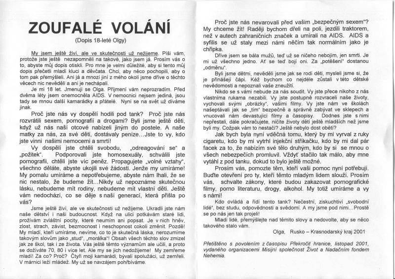 Porno, sex a jiné "dobré" kšefty - dopis Olgy X (05. 11. 2002)