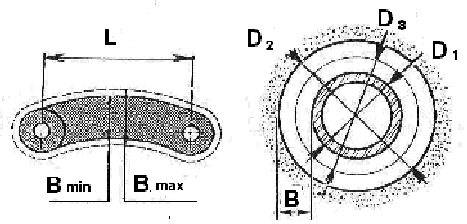 1) Zjistíme velikost mezery B=(D2-D1):2 a podle této hodnoty použitím tabulky č.2 určíme velikost těsnění LS a to tak, aby vypočtená hodnota B byla mezi hodnotami Bmin a Bmax.